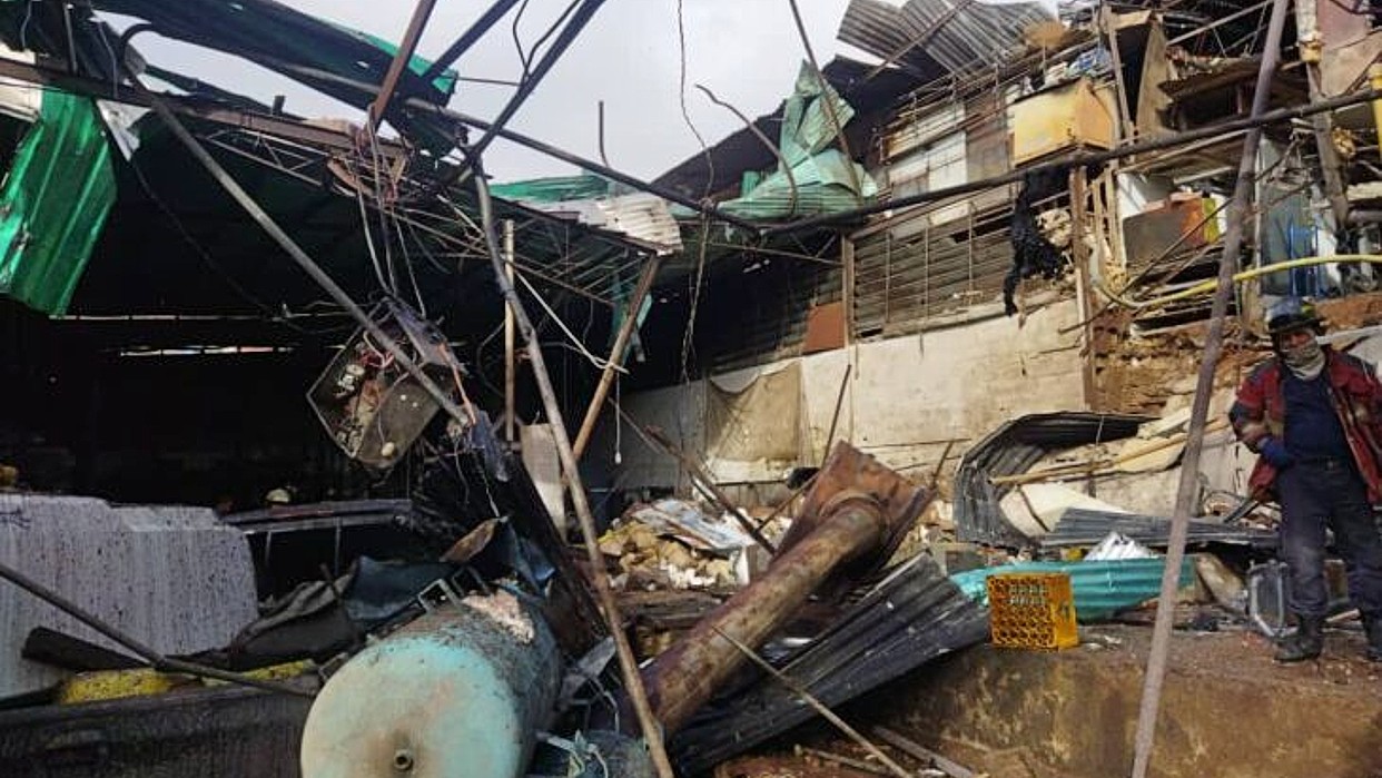El estallido provocó daños en paredes, techos y dos vehículos que se encontraban en las cercanías de la empresa textil, que resultó destruida en aproximadamente 80%