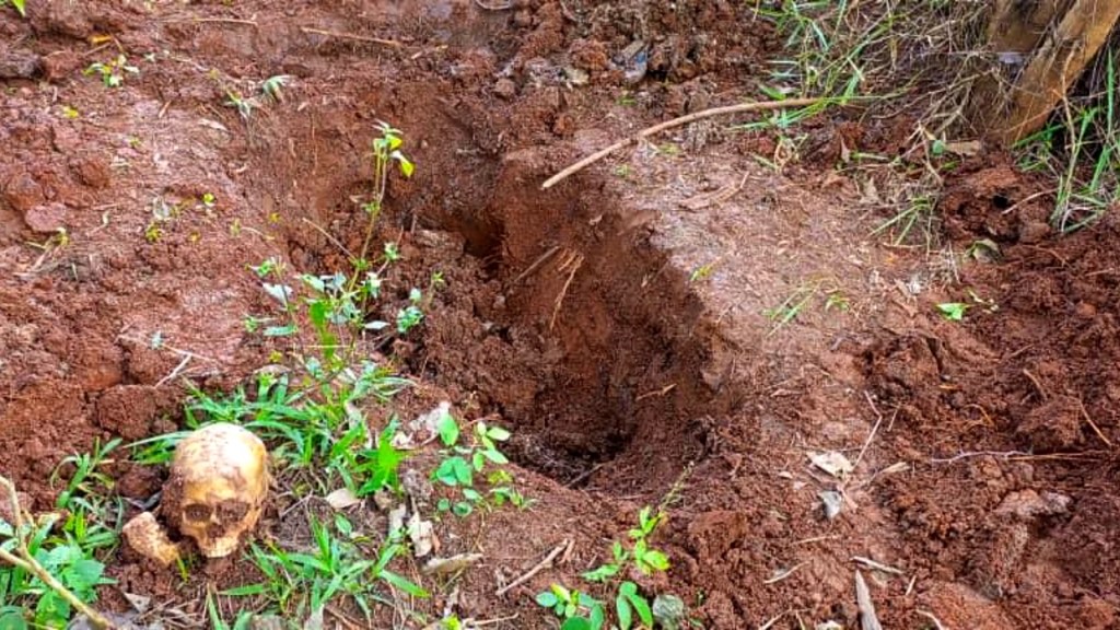 “En municipio Sifontes del estado Bolívar, en labores de intervención a las minas ilegales, (la) FANB localiza restos de osamenta humana en una fosa a cielo abierto”, publicó el encargado de la cuenta de Twitter del alto oficial.