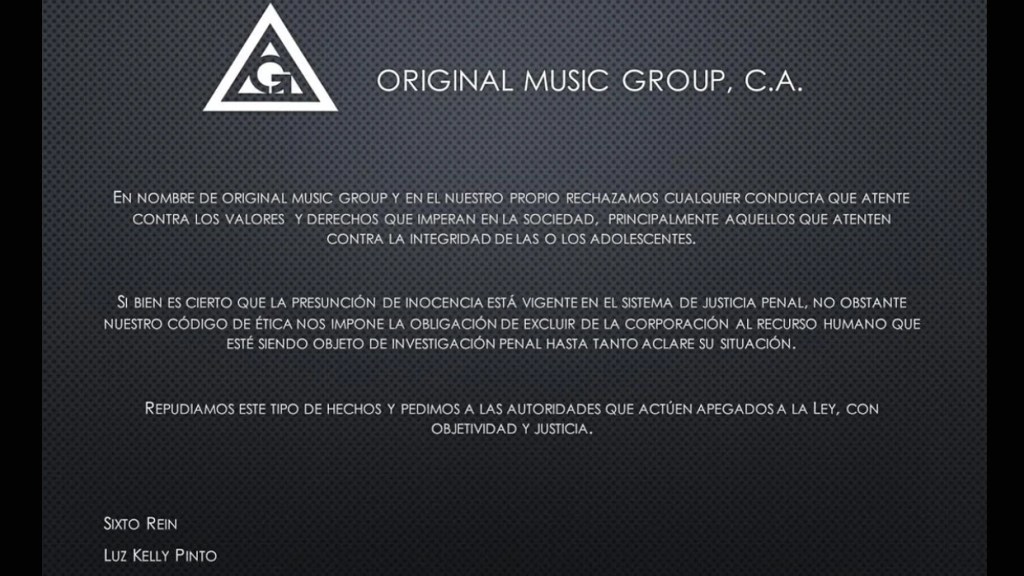 Como es natural en este tipo de hechos, el cantante y su organización musical presentó un comunicado oficial en su página de Instagram en el que condenan los hechos de abuso contra adolescentes y piden a las autoridades que “actúen con objetividad y justicia”.
