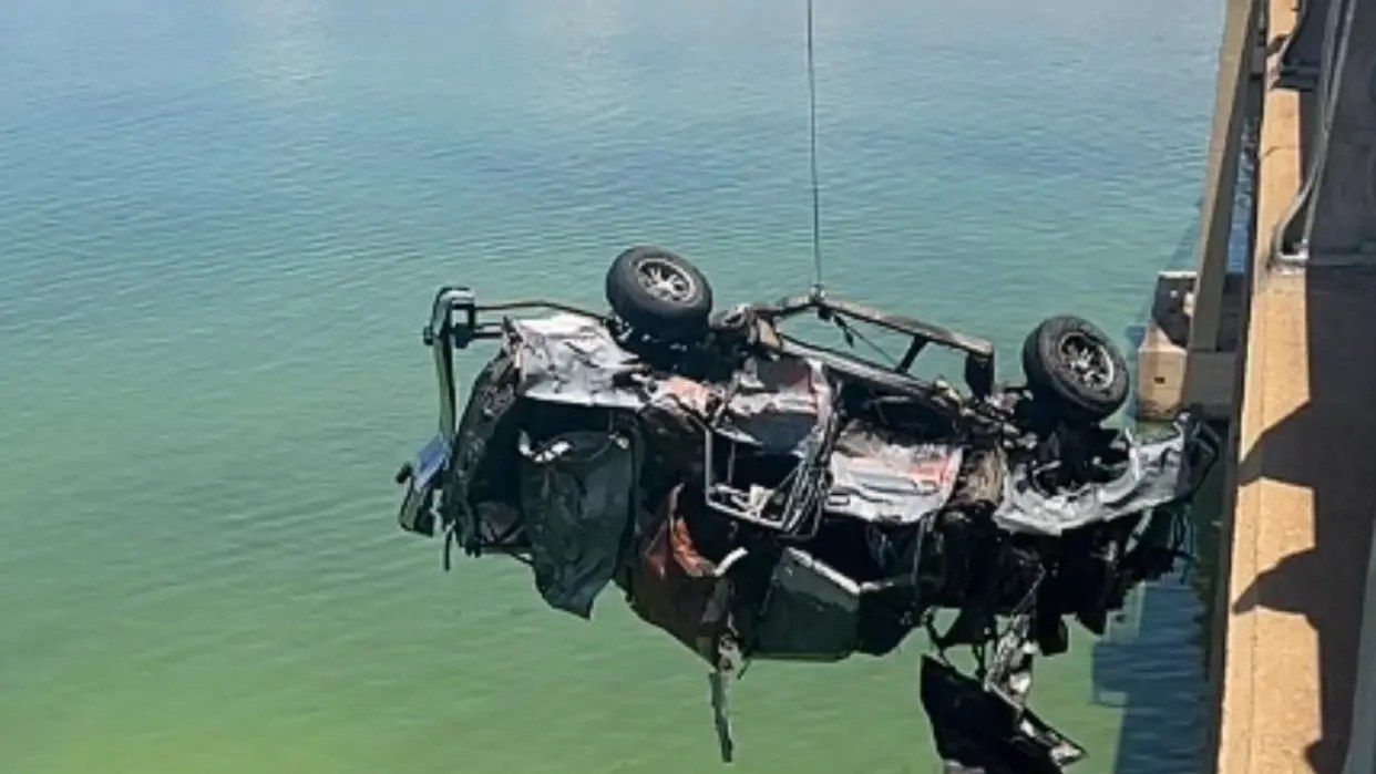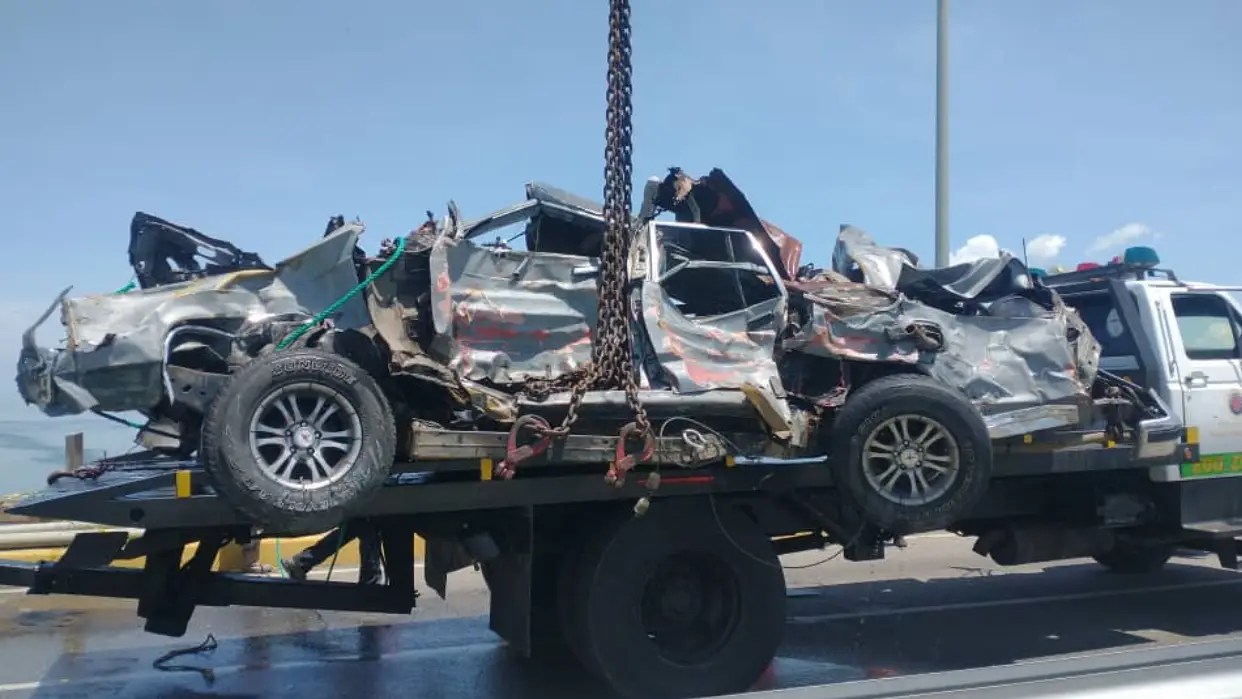 Cuando el conductor perdió el control del vehículo, el automóvil cayó directamente al Lago de Maracaibo desde la pila 26. Unos 50 metros del barandal quedaron totalmente destrozados por el accidente.