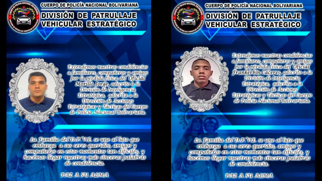 Los funcionarios muertos fueron identificados como los oficiales Jorge Alejandro Morillo Granadillo de 24 años de edad y Frankerbin Cáceres.