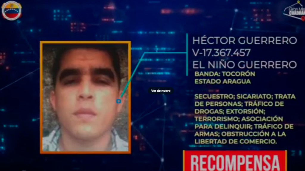 El Ministerio de Interior y Justicia actualizó la tarde de este miércoles 8 de noviembre la lista de los once criminales más buscados del país, lista que está encabezada por Héctor Rutherford Guerrero, alias “Niño Guerrero”, destronado pran de Tocorón y uno de los cabecillas de la banda transnacional el Tren de Aragua.