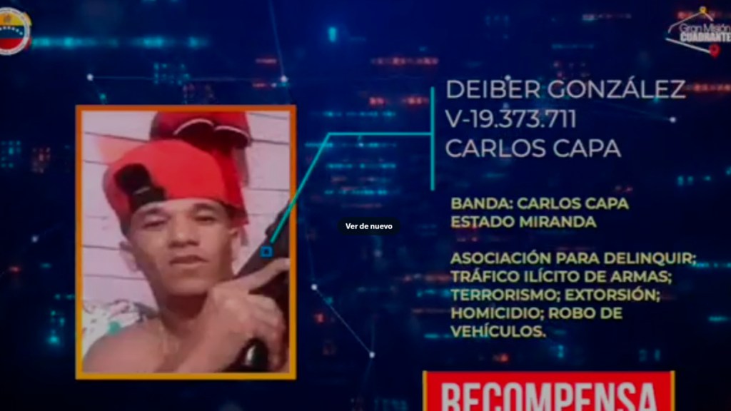 Deiber González, el temido “Carlos Capa”, se metió en esta lista. Este delincuente mantiene azotados a vecinos y comerciantes de los Valles del Tuy en el estado Miranda.