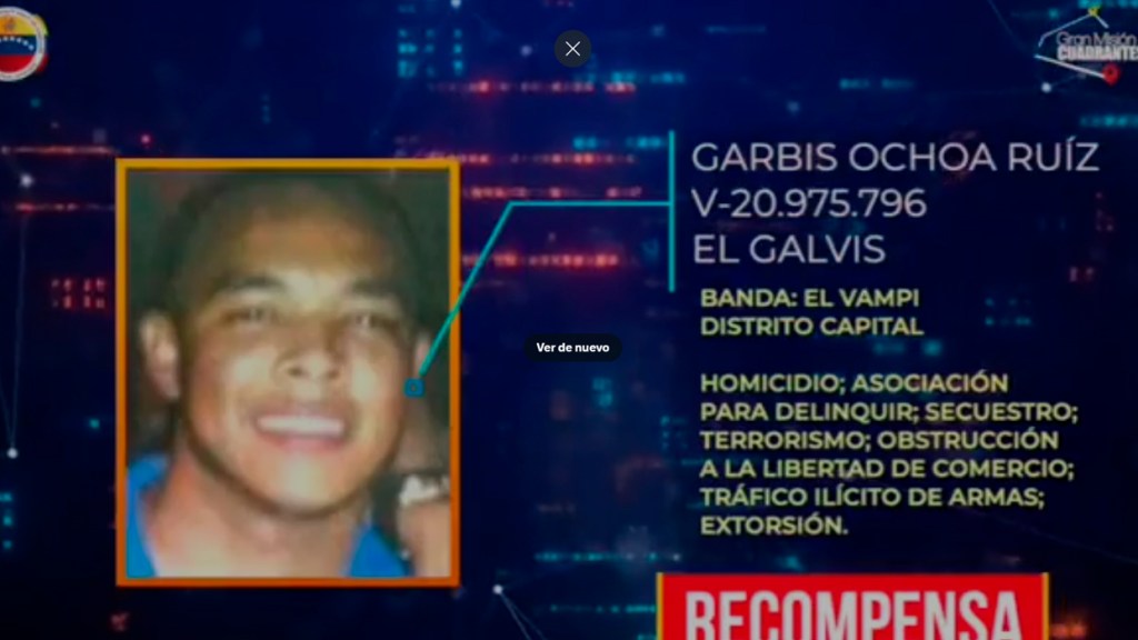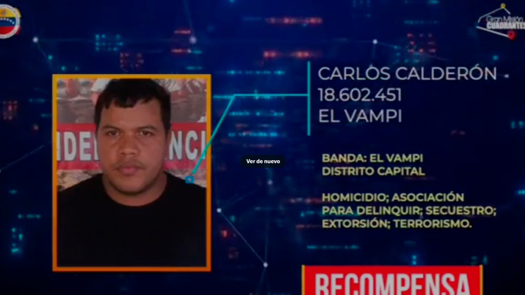 En la cuarta y quinta posición se encuentran dos viejos integrantes de este listado, se trata de Carlos Calderón, alias “El Vampi” y Garbis Ochoa Ruiz, alias “Garbis”, líderes de la banda de la Cota 905, junto al fallecido Carlos Luis Revete, alias “Koki”.