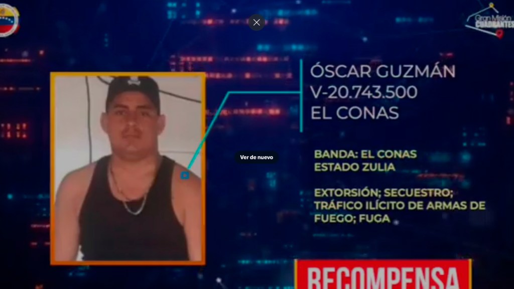 En el séptimo lugar tenemos al ex Guardia Nacional Óscar Guzmán, alias “El Conas”, uno de los más fieros extorsionadores del estado Zulia, oficialmente buscado por secuestro, tráfico de armas y fuga.