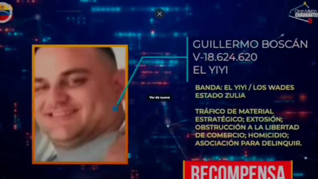 En octava posición está un delincuente que fue detenido por la Interpol en Argentina, Guillermo Boscán, alias “Yiyi Boscán”, quien se espera sea deportado en las próximas semanas.