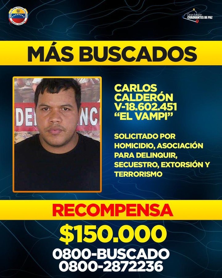 5- Carlos Calderón, alias “Vampi”, es uno de los líderes de la otrora poderosa banda de la Cota 905. Tras haber sido desalojados de esa barriada por el gobierno, este sujeto ha mantenido un perfil bajo, se presume que se encuentra en Colombia, aun cuando podría haber emigrado hacia Estados Unidos. El hecho de que se mantenga en el listado quiere decir que tiene un valor simbólico para el gobierno, que ofrece 150 mil dólares por su captura.