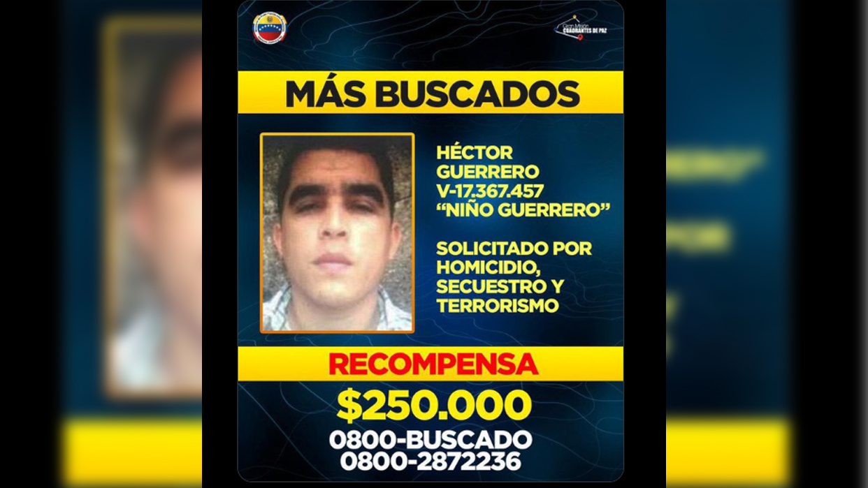 1- Héctor Rusthenford Guerrero Flores, mejor conocido bajo el alias de “El Niño Guerrero”, durante años ha sido la cara reconocible del Tren de Aragua, organización criminal que por largo tiempo tuvo como centro de operaciones la Cárcel de Tocorón. Guerrero es buscado por homicidio, secuestro y terrorismo. Las autoridades pagan 250 mil dólares por información que permita su captura, se considera que se encuentra armado y es definido como un sujeto de alta peligrosidad.