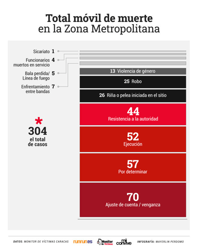 El informe destaca que la violencia a manos de funcionarios policiales sigue siendo un problema, particularmente en el Área Metropolitana de Caracas, donde se registraron 96 homicidios por ajuste de cuentas durante el año pasado.