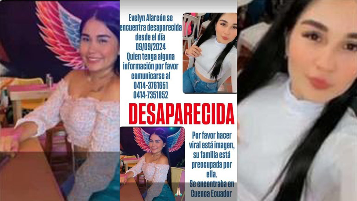 A través de la página de Facebook Venezolanos Desaparecidos por el Mundo, los allegados de Evelin Alarcón hicieron un llamado para tratar de ubicarla. Describieron a la joven como una mujer de 28 años de edad, de cabello y ojos castaños, un metro 60 de altura y unos 65 kilogramos de peso.