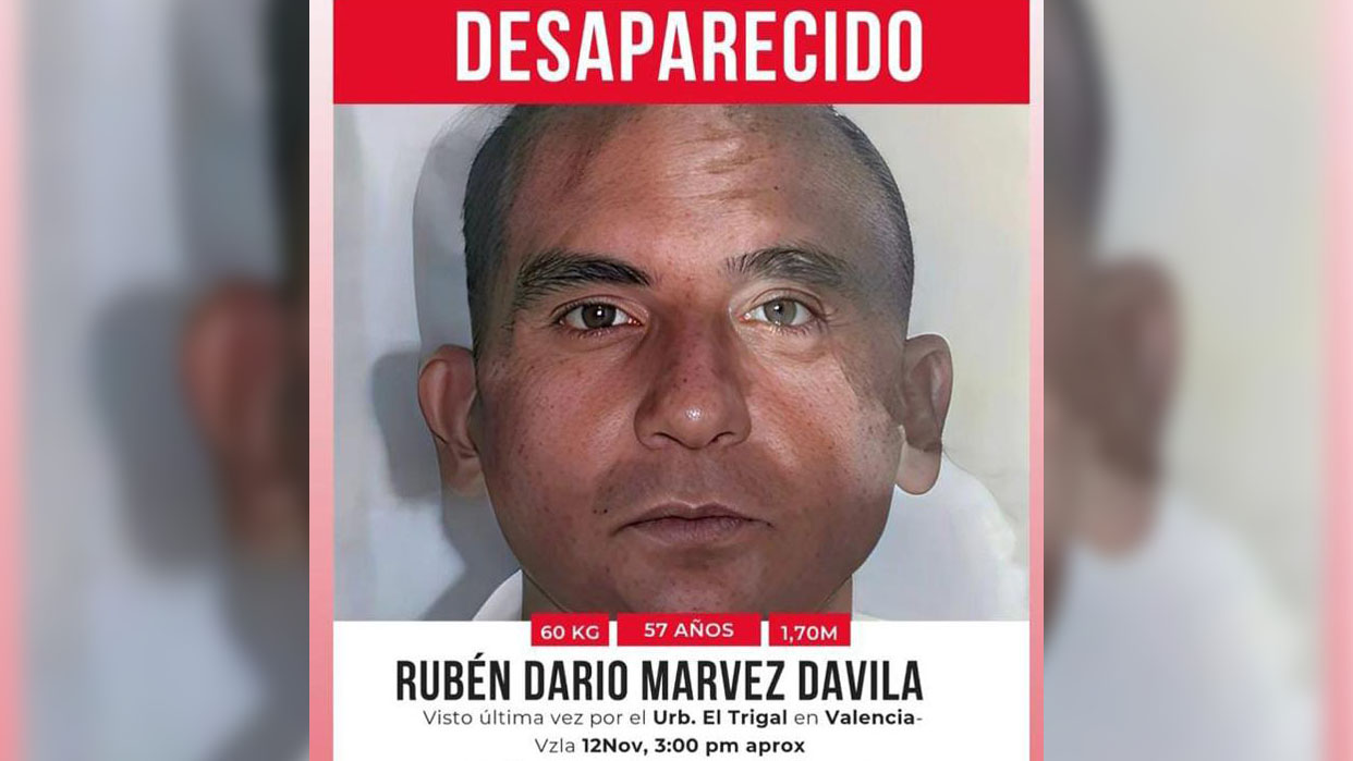 Familiares de Rubén Darío Marvez Dávila se encuentran tras su búsqueda luego de que desapareciera la tarde del pasado martes 12 de noviembre, en la urbanización El Trigal de Valencia, estado Carabobo.