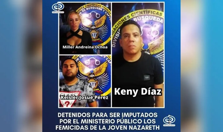 Una mujer y dos hombres serán imputados por la desaparición, violación y asesinato de la trabajadora del Senamecf Continúa leyendo Fiscalía identifica a detenidos por femicidio de Nazareth Marín