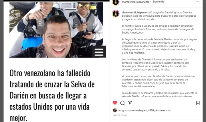 La selva de Darién se caracteriza por su difícil topografía y condiciones climáticas cambiantes, lo que aunado a la presencia de delincuentes en la zona y la ausencia de policías y militares en la zona la convierten en una de las rutas de migración más peligrosas del mundo. Continúa leyendo Al menos 76 venezolanos están desaparecidos en la selva del Darién